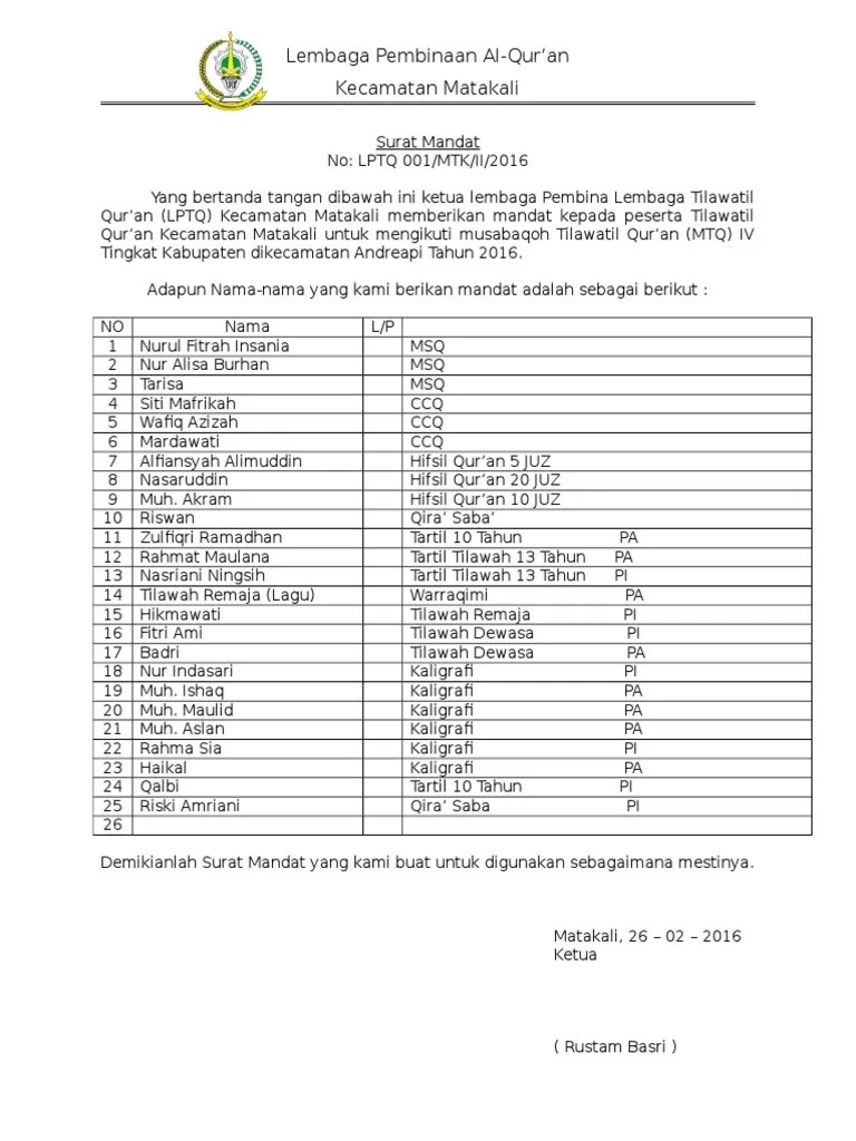 (0321)592463 kode pos 61382mojokerto,14 desember 2015nomor : Bagi anda yang sedang membutuhkan contoh surat mandat dari mabigus dalam rangka kegiatan pramuka, bisa didownload melalui link di akhir postingan. So please help us by uploading 1 new document or like us to download Surat lamaran dibawah ini bisa juga anda ganti menjadi bahasa inggris lalu di print atau di tulis tangan. Dengan contoh draft surat mandat ini kita akan belajar menyusun surat untuk kepentingan tersebut dengan lebih.